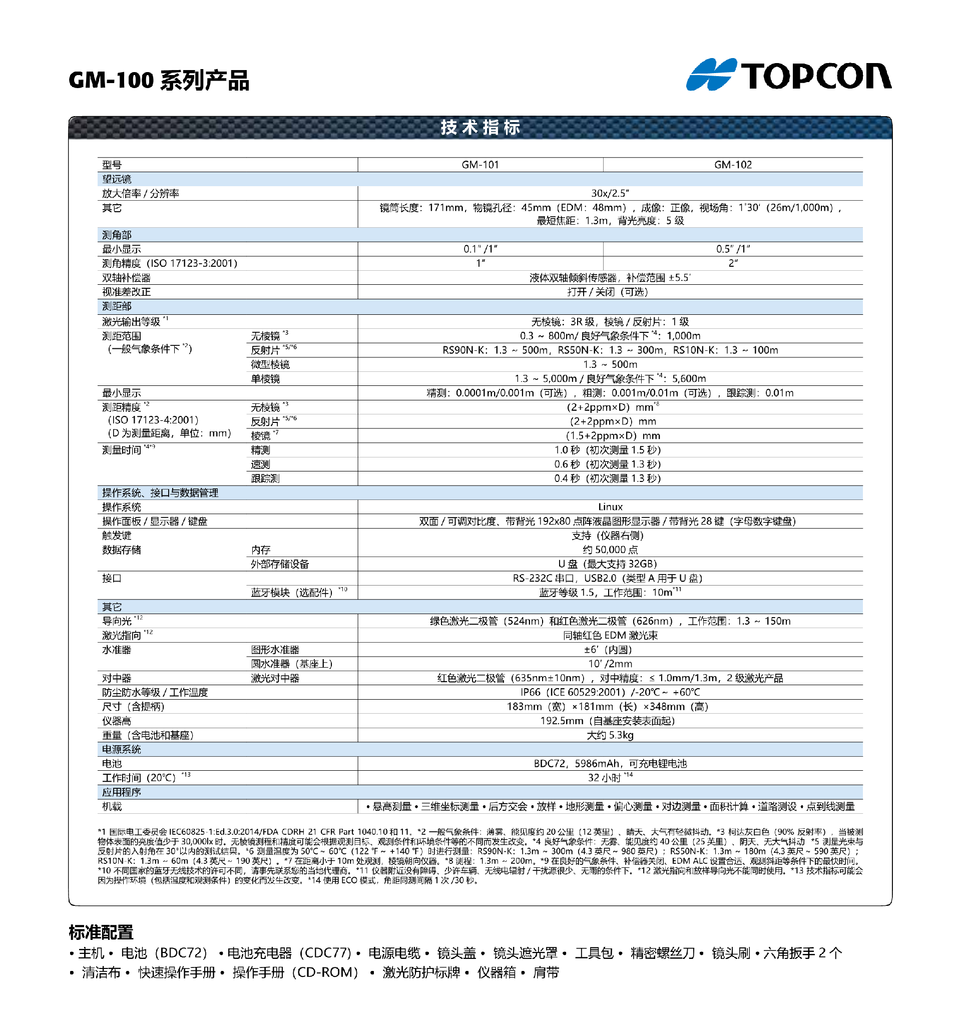 GM100全站仪机身坚固,采用精密测角、测距技术,适合隧道、桥梁、钢结构、水利等大型测量项目??羰〉缒J?,一块电池可用32小时。
