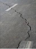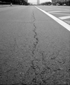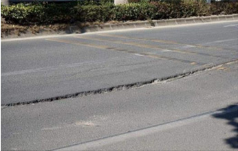 裂缝:沥青砼路面建成初期会产生不同形式的裂缝,随着表面水分的侵入,会使路面基层至路面的承载里下降,加速沥青路面的破坏。
