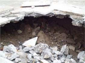 脱空:是面层与基层间形成较薄的空气夹层,现场破板后会发现面层下疏松,局部脱空现象的实质是 原混凝土面板与下覆基层间存在少量空隙,其间大部分为外来物质所填充。